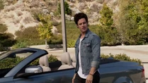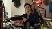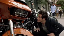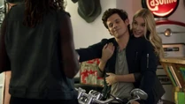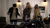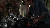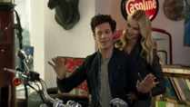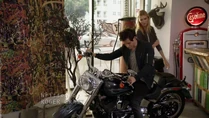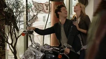 The sales chick comes over and says they’re the hottest couple ever. Kirsten tries to deny that they're a couple, but Cameron stops her. Kirsten says he died last week then decided he wants a motorcycle. He buys it – Kirsten is shocked. Kirsten says he’s young for a midlife crisis. Cameron says they have to go to work and asks her to hold it for him. He does Arnold and says “I’ll be back.”