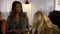 The woman says find me and we’ll talk about whatever you want. She tells Kirsten be careful what you wish for. My name is Ellie. Back at Fisher’s place, he does a hunt and peck while Camille boxes. Kirsten begs him to let her do it and Camille says, "Leave my Fishy alone."