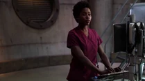 They get ready to stitch into him. Maggie asks why Cameron is so happy and he says he’s getting his first motorcycle. Ayo says a motorcycle is a bad idea. They stitch Kirsten in and she looks around and says she’s in Derek’s workshop full of equipment.