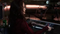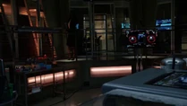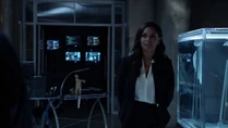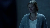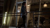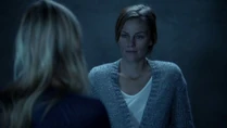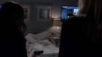 Cameron tries the door and finds it unlocked. They go inside and see medical equipment including a hospital bed. There was a medical transport van downstairs and they have Fisher shut down the elevators. The doors open and Linda is there in her wheelchair. She says hello Kirsten.