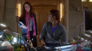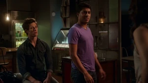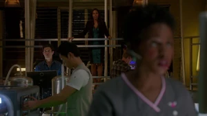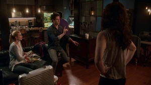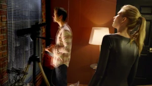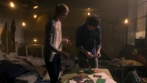 While Kirsten prepares to bounce into Robbie, Camille and Linus have an awkward moment related to their hook-up the other night. Camille vanished into thin air, making Linus think that she didn’t have a good time and that she didn’t want to see him again, but she explained ns that she had a major presentation that she had to prepare for. However, she does confirm that she has no plans in going out with him again – their time together was just a one time thing. With Cameron being overly cautious out of lingering guilt over Marta, Kirsten bounces into Robbie’s memories and finds him at his apartment window with a police helicopter sounding outside. Once his telescope starts glowing, pointing to it being a memory hot spot, Kirsten touches it and discovers that Robbie spied on his neighbors across the street, with a jogger, a woman painting her fingernails, a woman in a tank top, and an argumentative couple particularly sticking out.