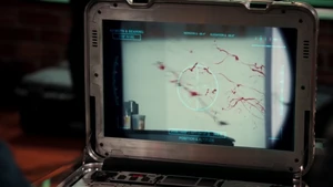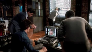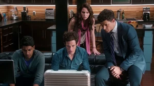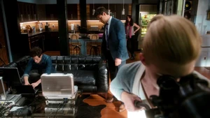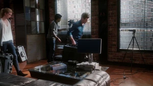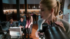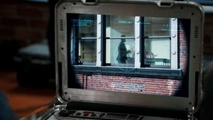 Since Kirsten isn’t able to identify the apartments outside the stitch, and since the stitchers won’t be able to get into Robbie’s place due to it being an active crime scene, it’s decided that the team will stakeout the building next door from Cameron’s apartment. Loaded up with gear courtesy of Maggie and the unlimited NSA budget, Linus, Camille, and Kirsten head over to Cameron’s to help him set up shop. He’s, of course, incredibly anal about everything in his apartment and once Linus sets up the tech, he gets onto Kirsten for being nosy about the habits of the neighbors across the street. Meanwhile, Camille tries to ease the obvious tension between her and Linus, only to be confronted again about her cagey-ness and the reason she won’t go out with him again. She tries to argue that the beauty of the hook-up with Linus was that it was a spontaneous, in-the-moment type of thing, but he’s still not okay with her rejection.