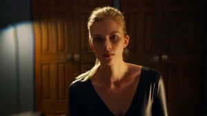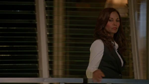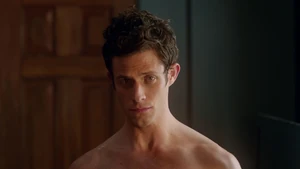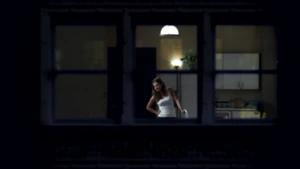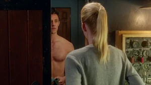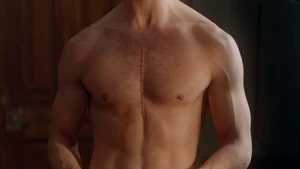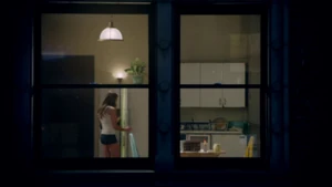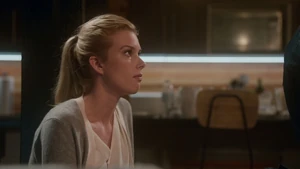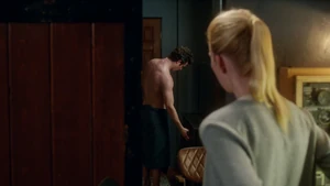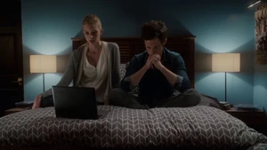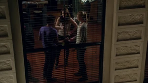 While Linus and Camille celebrate the victory with some wine, Kirsten goes to find Cameron. She does come across him in his bedroom after a shower, but she inadvertently sees the large scar on his chest that she didn’t know about. As he closes the door on her, a mysterious figure across the street observes the goings-on in Cameron’s place with a pair of binoculars.