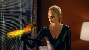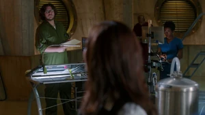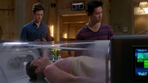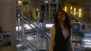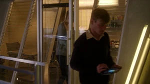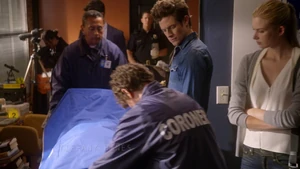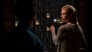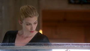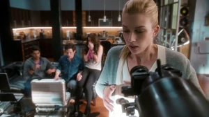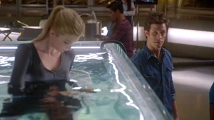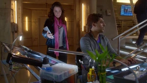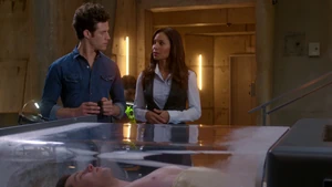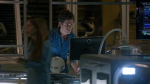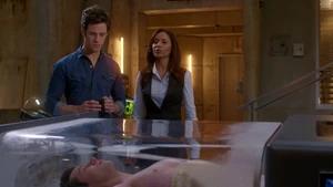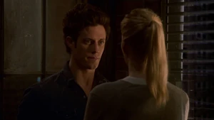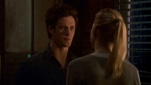 Tank Top Girl invites “Robbie” over for a beer before heading over to his apartment herself. Told that Robbie felt a certain emotional pull to this woman, he sends the rest of his team out of the room and fumbles his way through a conversation with her, as she thinks that he was the one who had been watching her. Tank Top Girl turns out to be a model for art students who Robbie helped by providing groceries for her after seeing her empty fridge. She thanks him for the generosity and promises to pay him back eventually, but until then, he has a standing invitation for beer anytime he wants. Before she leaves, Tank Top Girl gives Cameron a kiss on the cheek to go along with the new wrinkle in the case of Robbie’s murder. At the lab, Kirsten is informed by Maggie that Robbie’s memory is about to completely disintegrate, meaning that stitching back in is a no-go. But Kirsten gets to go back in when she claims to have an idea on how to produce a motive in the murder.