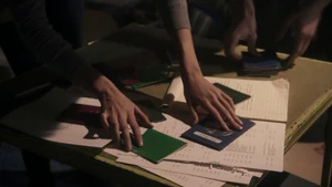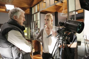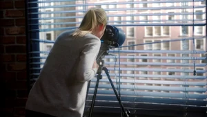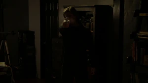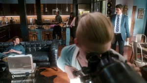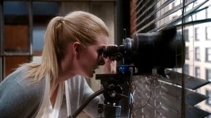Fisher comes over to inform the team that there’s no conceivable motive to kill Robbie, given the smallness of his life, and to confirm to Kirsten that foul play was not involved in Ed’s death, the latter being ruled a suicide. But Kirsten isn’t upset; she knows that something fishy happened with Ed’s death and she knows that she’ll be able to prove that to Fisher sometime in the near future. Just then, Kirsten manages to find the argumentative couple across the street with her telescope, though their arguing is accompanied by a knife brandished by the man. Things intensify with him and his girlfriend to the point that Fisher calls his team and heads across the street to check things out, except before he gets there, the couple walk out of Kirsten’s eyeline and blood soon splatters on the apartment wall. Camille, Linus, Cameron, and Kirsten all believe that they just witnessed a murder, but it turns out that the guy they were observing is an artist who uses a palette knife to create his paintings. The “blood” they saw was red paint and the arguing they saw was a fairly normal spat about money.