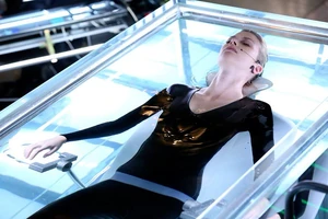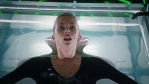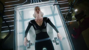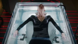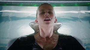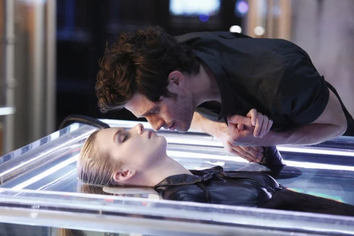 Kirsten, Camille, and Fisher are drinking at a bar. Cameron shows up late and the girls decide to go to the bathroom. While in there they hear gun shots and come out to find Fisher shot and Cameron unconscious (Kirsten calls his name and holds his hand...awww). Since Cameron is out they cannot stitch the victim and are sent home. But, instead of going home Kirsten goes to the hospital to see Cameron. Next day, Cameron heads to the lab – he’s on his feet and better. The others are shocked he’s there. He says all he remembers was shots then waking up in the hospital. Later in the episode, Cameron says he may have seen the license plates and it’s in his head and says she’s going to stitch in and find it. She says he’s not dead and Cameron says the chemical will stop his heart for four minutes and she can stitch in. He says Ayo can then jump start his heart and they’ll know who the big bad is. Everyone says that they won't do it but he injects himself anyways saying that he has to keep her safe. The group have four minutes before he cannot be revived. They stitch Kirsten into Cameron. Les says to start the protocol. Kirsten says to hurry and stitch her in. She hops in the tank and they load him into the capsule. Maggie curses at Les and Camille calls to have the defibrillator ready and charged. They stitch her in. Camille put her into the wrong part of his memory. Kristen says to move her and she skips around in his memories. It’s all