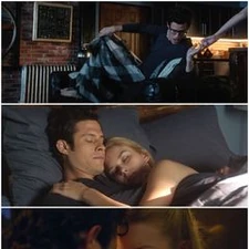 Cameron wakes in his bed stressed out. He calls Kirsten and he asks where’s the cheery hello but she asks why he’s calling instead of coming into the lab. He says she’s not a morning person and she says she’s not anytime.He asks how her physical went with Ayo and she says she has a giant pain in her ass then says she’s fine. He says his neighbor is stealing his magazines. He says the guy below him in his old place refuses to put his name on the mailbox and the guy takes them. Kirsten says to man up and go get his magazines and he says to look for his head in the guy’s freezer if she doesn’t hear from him in an hour. Cameron goes downstairs to talk to Robbie, the neighbour and finds him dead. Cameron worries that since he used to live there if maybe he was supposed to be the target. The team begins to suspect that the victim was a "peeping tom" and crash at Cameron's house to monitor what the victim was looking at. Kirsten feels like Cameron is smothering her since he got that phone call. He says he’s being responsible but she says she’s not his responsibility. He says it’s his job to keep her safe in a stitch. She says she knows all the risks but he says she doesn’t. Kirsten later, thanks Cameron for going through with the stitch when he didn’t want to. He says wow. She says he must think she’s an awful person. He says he thinks she’s pretty great. The episode ends with the team having celebratory drinks at Cameron's apartment. Kirsten goes to bring Cameron in to have a drink with them and she spots him in a towel through the gap in the door. He sees her watching. He looks directly at her and she stares back. He goes over closer and then she sees tears in his eyes. He closes the door in her face. She walks away uncertain about what happened and confused. She goes back to have the drink with the others.