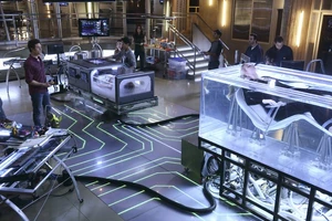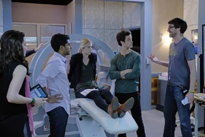 Stitchers begins with Kirsten heading down into the lab. She finds alarms blaring and red lights flashing. It looks like a disaster. She asks what’s up and Cameron says they need her help. He runs her into another room and down a hall – he says they’re running out of time. It’s a surprise party for her birthday. Everyone is there even Maggie and Camille. They have two brains on her cake connected by lights. Kirsten says surprise anything doesn’t work on her. Kirsten talks to Camille about Liam proposing to her and then realizes that she was telling her over an open communication line (everyone heard, including Cameron). Cameron says to tell him in person once she decides if she's engaged, not over an open channel. After the stitch, they all become infected by the virus the victim was carrying. Cameron asks Kirsten if she’s going to call Liam and she says she never gave him an answer. She’s focused on the problem at hand. Cameron says since it may be their last fight and talks to her about the proposal. He says even if she doesn’t want to marry Liam she should call him. Kirsten says she doesn’t plan on dying so doesn’t need to make the call. Cameron calls his mother who is brisk and sort of rude. She asks if he is ok and he tells her he is fine. She also asks if it was worth it. (not accepting a important position and choosing stitchers) He looks at Kirsten and says yeah. Kirsten and Cameron go over some data. Cameron tells her to say goodbye to Liam but she says she did when she left for work. Cameron says they may die and it’s kind of a big deal. He slaps the computer shirt and says he had heart surgery at 10 and almost didn’t survive. He says his parents over-protected him from everything about it. He says the scar is a constant reminder of how fragile life is and how fragile his parents thought he was. Kristen says he has proved them wrong several times over. He then solves the formula for the cure of their infection. She hugs him and says he is a genius. They all survive and Cameron is happy she is ok.