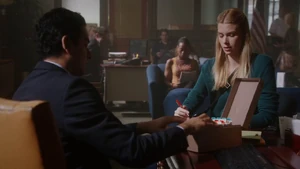 Cameron tells Kirsten that she can still talk to him about anything. She says she know and he responds that nothing will ever change that. They cling their mugs together. While interrogating a group of lawyers Cameron freaks when one of them says that his dad ran a scheme to take money from a bunch of people and is now in jail with Cameron sitting pretty in his loft with all the money. Kirsten tries to calm him down.