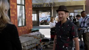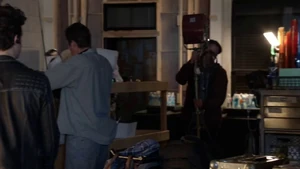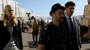 Bain says doing a threat assessment will take forever since most of the people on set hate him. Linus tells Cameron that Camille is pulling back from him. Linus is playing the music which puts Kirsten into some sort of zone out mood.