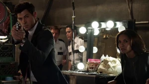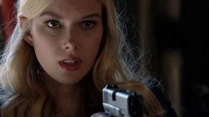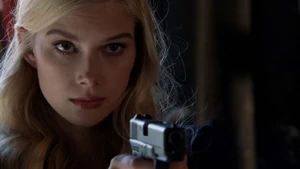 Sandy shoots a mannequin and then we see her looking at a magazine cover and says Sandy was programmed as an assassin. The target was Roman Bain a big producer. Kim Charles, former MI6, sued him last year over a film idea about brainwashing assassins.