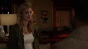 Kirsten answers the door and it’s Fisher with news about Elizabeth Stinger. She lets him in and he says she got remarried and her name is Elizabeth Brown but there are hundreds of women in California with that name. That’s a problem.
