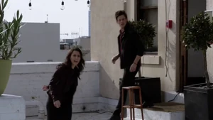She meets Liam for a sparring session and they chat after. She asks why he stayed in LA and he says he misses Kirsten and how easy it was to be with her. Camille says she threw up in her mouth and calls him a selfish English prick for liking her because she made no demands.