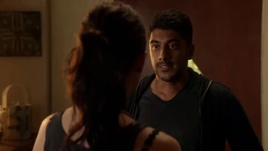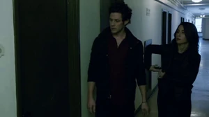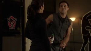 She thanks him for saving her and asks how he knew she’d snap out of it and not shoot him. He says he didn’t but they’ve been in each other’s minds. She asks if he wants to do something tonight but he says he can’t and she says it’s okay.