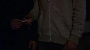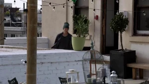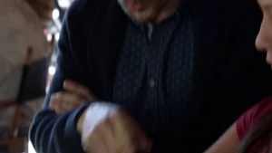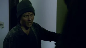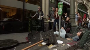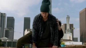 They double up on jobs and start the stitch. They have eight minutes before Maggie can get there. They stitch Kirsten in and she sees the roof of a building where Sandy was hanging out and reading a script. Then we see the kid in the red baseball cap again.