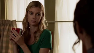 Maggie tell Cameron to get Kirsten out of there. Later, Maggie approaches her and hands her a cup of tea. Maggie says it’s hard shooting someone and she’s been there. It’s tea with a kicker and Maggie tells her she did the right thing and didn’t kill the woman.