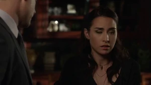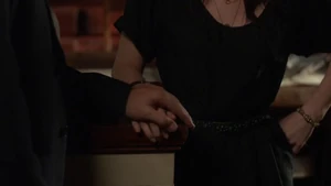 Maggie says they’ll scoop up Kim Charles. They need to warn Bain. Kirsten and Fisher go see Bain on set and he scoffs at him being risk. He says Kim Charles is a whack job and says she made up the whole story. He says he came up with a better story than hers.