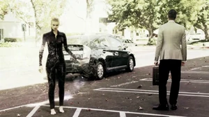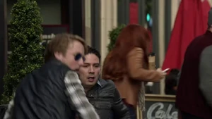 Cameron theorizes that Kirsten will wait at the studio til Bain shows up tomorrow. We see Kirsten walking down a sidewalk and two guys coming out of a club. They have a joint and ask if she wants a hit. One of them grabs her and she kicks his ass then the other one too.