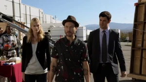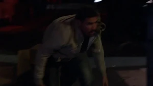 The guys take off and leave her alone. She backs into the shadows. Next day, the team heads to the studio to find Kirsten. Maggie approaches Bain and says there will be an attempt on his life today. He’s not buying it and insists on working.