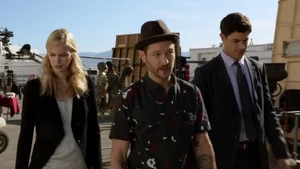 Maggie paces while Linus searches for Kim Charles. He reminds her that Kim is MI6 and can hide. Camille is with Fisher and they can’t find Kirsten. Cameron comes back and says she’s not at his place yet. Maggie says Bain won’t accept protection.