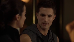 He says Kirsten was his longest relationship even though it was mostly long distance. He then flirts up Camille who says she has to go and walks out. Nina asks Cameron how he can not like Torchwood and he says Captain Jack is not worth a spinoff. He says agree to disagree.