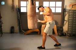 In his work out outfit in season 2, he wears a grey tank top, and white shorts, and wears jordans.