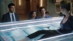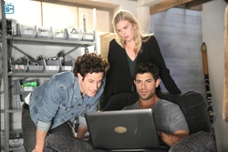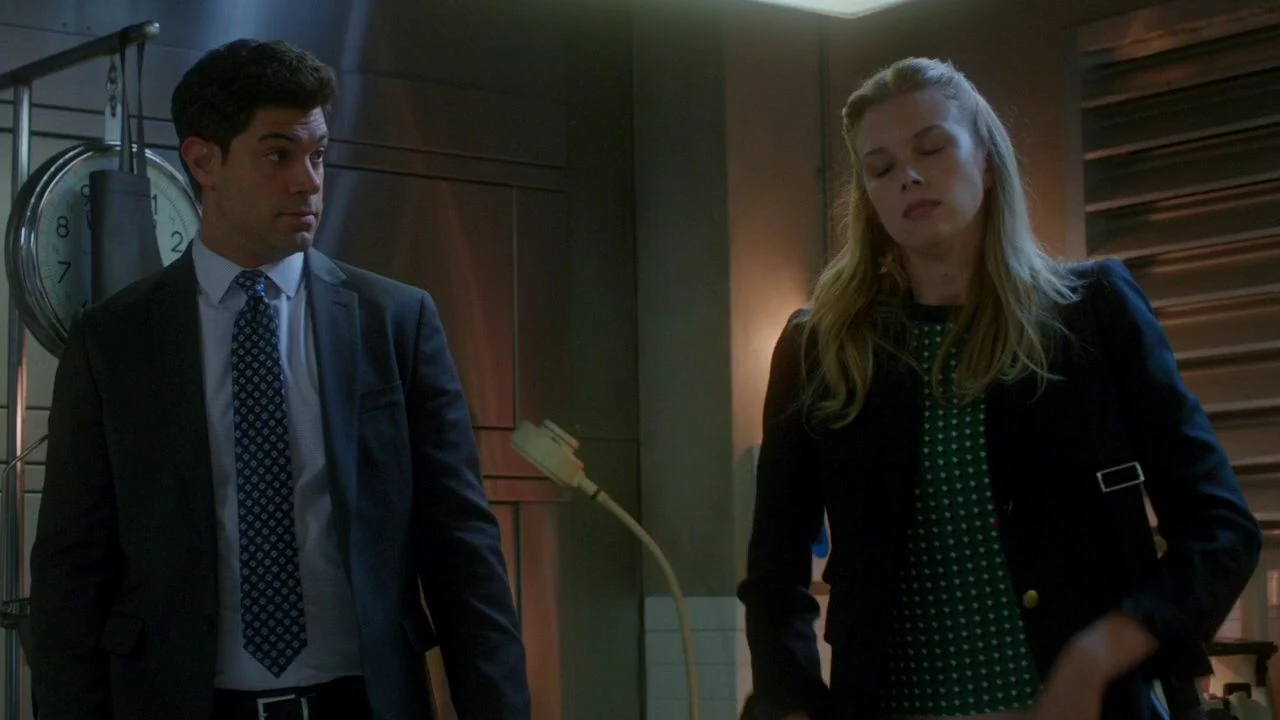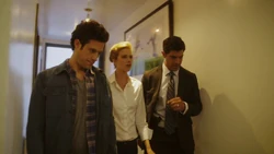 Fisher shows up at The Stitcher Lab in response to Kirsten's message about Ed Clark. She tells him that Leslie Turner told her Ed Clark died protecting her.