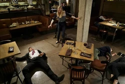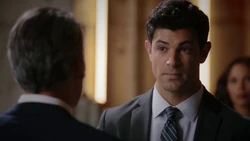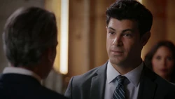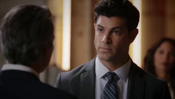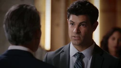 Fisher first appears in this episode to meet Leslie Turner in order to inquire about Ed Clark's death but receives no answers from him. Later while at dinner, Fisher spots a gunman and protects Cameron but is shot himself. The gunman was