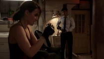 Kirsten and Camille head to the lab – Linus and Cameron are shocked to hear that Camille has a brother. They banter back and forth, and then it is time to get to work. Kirsten gets strapped down, and prepares to stitch in to Mulaney’s head – she is lying on ice. Kirsten learns that before she died Mulaney was arguing with a cable guy named Furrillo, there is a little boy watching them yell.