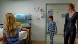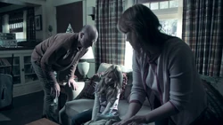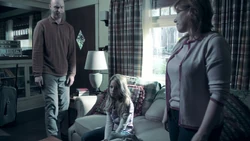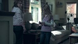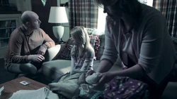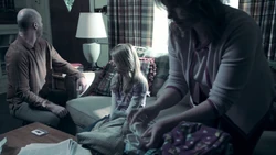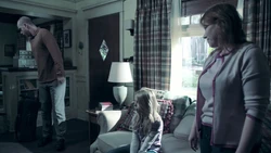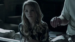 A reference to monsters being in the world causes Kirsten to remember when Ed Clark used to check for monsters under her bed. When he searches with a flashlight but fails to find any, Kirsten implores him to look again. Later Kirsten remembers Ed Clark trying to console Kirsten with the knowledge that there are no such thing as monster, but Kirsten cannot handle the emotional display and covers her ears. It is due to this flashback that Kirsten decides to remain in the Stitcher's program despite not being able to stitch into Ed's memories.