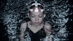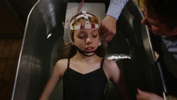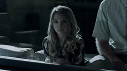 Attending the service for Marta Rodriguez and seeing Cameron in pain causes Kirsten to remember to when Ed Clark took her to visit her mother's final resting place. Young Kirsten is unemotional and unresponsive when Ed tells her that she can touch her mother's picture whenever she wants. She instead walks away. Young Kirsten is also seen briefly when a machine is used to recover lost memories. She is seen floating in a tank of water with electrodes strapped to her head, indicating that she may have been instrumental in the testing of the stitcher's technology. She is seen one last time as Kirsten stands once again in front of her mother's wall marker, led there by the cassette tape left by Ed Clark.